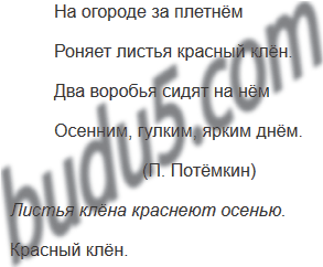 2. В какое время года листья клёна краснеют? Какой клён осенью? Запиши слово клён вместе со словом, обозначающим его признак.