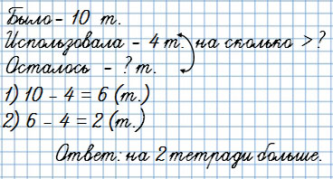 У Тани было 10 тетрадей. Она использовала 4 тетради.