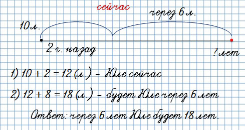Два года назад Юле было 10 лет. Сколько лет будет Юле через 6 лет?