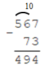 Поскольку из 60 нельзя вычесть 70, разложим 500 на 400 и 100, прибавим 100 к 60