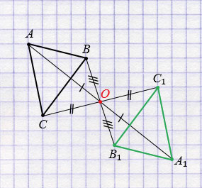 Построим треугольник А1В1С1, симметричный треугольнику АВС относительно точки О.